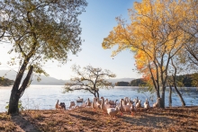 대청호반의 일부 수목에 단풍이 들기 시작했다.